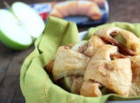 Place an apple slice on the wide end of each triangle. Wrap crescent roll dough around each apple.