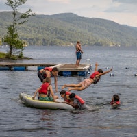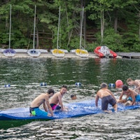 The afternoon turned rainy, prompting us to switch gears to some indoor line games perfect for a rainy day. Later in the evening, we enjoyed our Gathering tradition, where we sit at Sign Point as the sun sets to reminisce about the past week. Nestled here on the beautiful shores of Lake George, we are incredibly fortunate to experience such moments as simple as a beautiful sunset. Gathering allows us to pause, express gratitude, and fully appreciate the natural splendor that surrounds us.