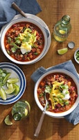 - Stir in both beans and cook until warmed through, 8 to 10 minutes. Serve with sour cream, Cheddar, scallions, cilantro, and lime wedges alongside.
