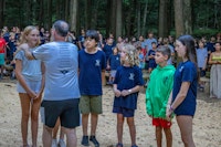 At Adirondack Camp, we have a special ceremony known as Awiskini, one of our oldest traditions, to emphasize our cherished core values here at camp. During Awiskini, we honor campers who embody our principles and have successfully completed the challenges of Silence, Memory, and Service to earn the title of true Adirondackee. The weekly ritual includes engaging games to test our abilities and foster enjoyment among all participants in a wooded area ringed by tall pines and bedrock cliffs.